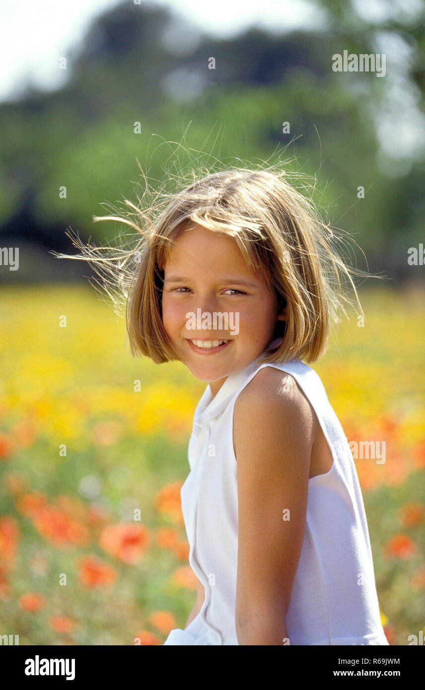 Portrat Laechelndes Blondinen Maedchen Mit Pagenkopf 8 Jahre