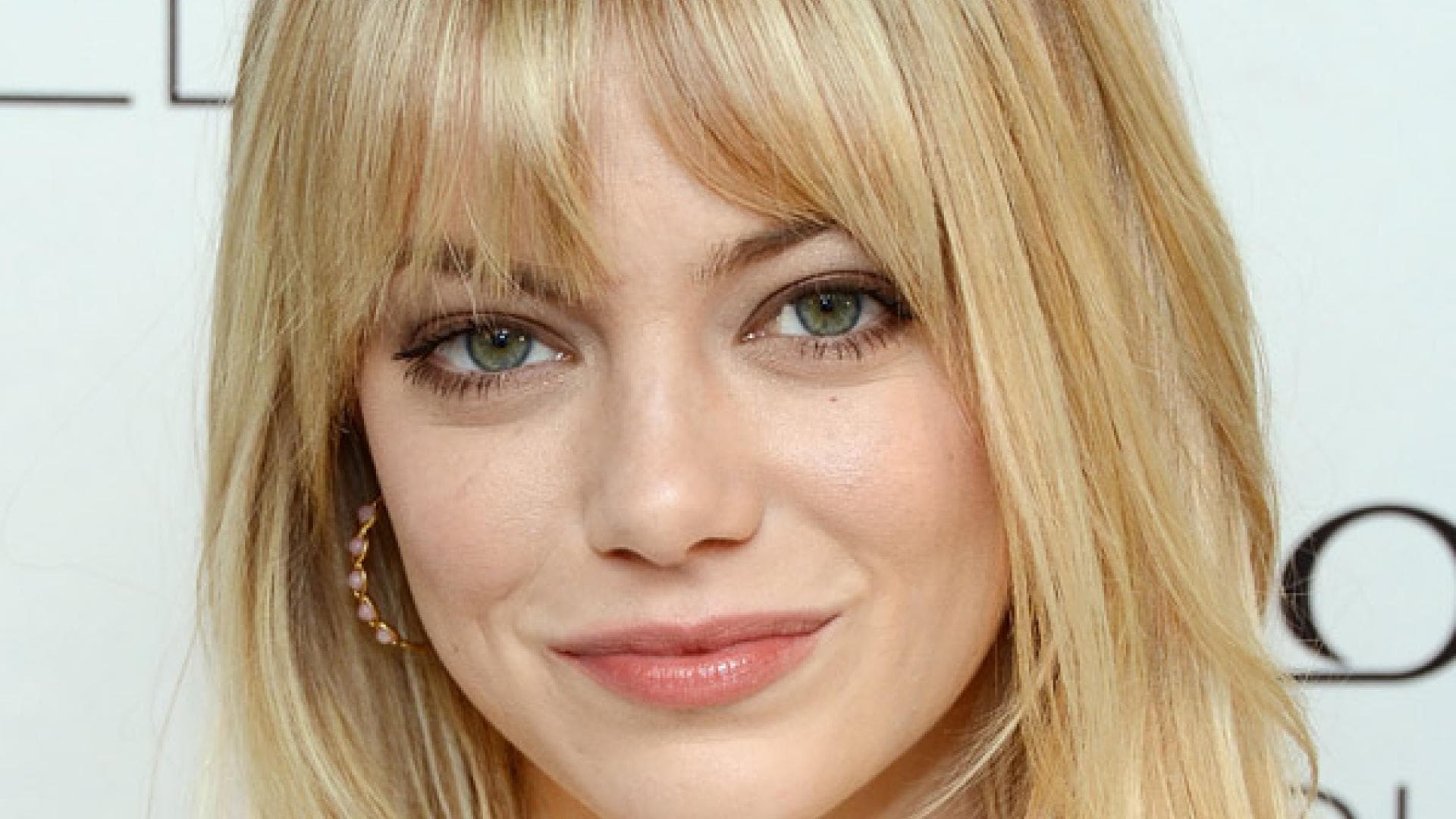 Emma Stone Mittellange Frisur Mit Seitlich Geschwungenen Pony